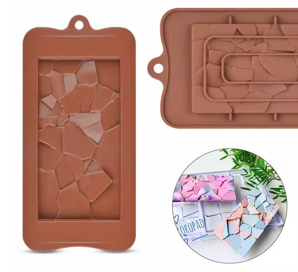 Elevate your chocolate-making craft with this professional-grade silicone mould featuring an innovative geometric crackle pattern. The 25 cm x 15 cm x 2 cm brown mould includes 12 carefully designed cavities that create stunning textured chocolate bars. Crafted from premium food-grade silicone, this versatile mould is perfect for creating artisanal chocolates, confectionery, and delightful treats. The durable construction ensures consistent results and effortless release of your creations, while maintaining its shape through repeated use. Each cavity provides generous space for experimenting with various flavours, fillings, and decorative elements. The lightweight design at just 150 grams makes it comfortable to handle, whilst the practical dimensions fit perfectly in standard kitchen workspaces. Ideal for both novice and experienced confectioners, this mould helps achieve professional-looking results every time. Hand washing is recommended to preserve the mould's quality. Whether crafting special gifts for celebrations or indulging in weekend chocolate-making sessions, this mould will become an essential tool in your confectionery arsenal. The distinctive crackle pattern adds an elegant, contemporary touch to your homemade treats, making them truly memorable.